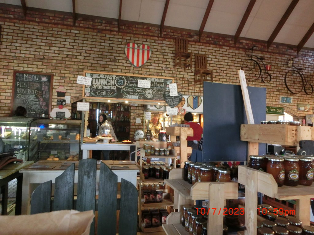 Passing a sign saying Coffee got Jen’s immediate attention, so 4k’s later we pulled into the roadside cafe and farm shop. Jeez they just about sell everything. Obviously bottling and selling all sorts of fruit, I sneaked a couple of pics despite the sign requesting none.