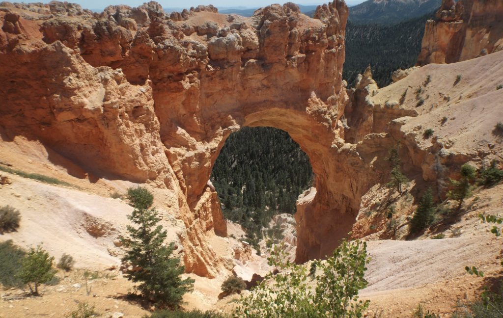 Bryce is famous for it odd shaped, statuesque rock features which are known as ‘hoodoos’. Water only plays a minor role in their formation. As snow and ice melts, water seeps into fractures. When it re-freezes it expands and cracks the rocks around it. This happens frequently here because for around 180 days a year, temperatures swing widely between freezing nights and hot afternoons. A combination of gravity and meltwater move the stone fragments down hill.