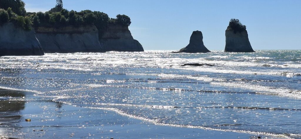Seeing a sign for the “world’s best campsite”, we decided to investigate. The sign might be a bit of an exaggeration, but it was a very pleasant spot at Kaupokonui. We were just setting ourselves up when the lovely lady in charge of the camp drove up and gave us a $50 refund. As we had both vehicles on just one site, she said she wouldn’t charge us for two sites.