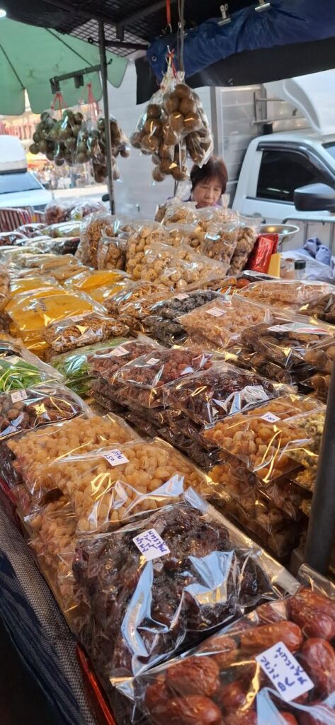 To celebrate New Year the tradition requires everyone to be drenched using pots, pans, massive water guns or just hoses. Utes prowling with their occupants intent on saturating anybody within range. Motorcyclists, pedestrians, other ute passengers, everyone. It’s a carnival atmosphere and right now from our 12th floor room drums and music is drowning even thoughts. Let’s hope it doesn’t extend into sleeping time. Dinner tonight in an outside food market.