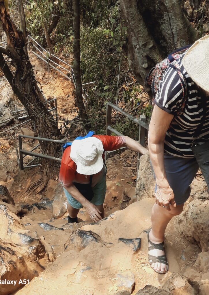 During our stay, a walk to another temple beckoned, up 380 steps. The most memorable part of the walk was the view from the top in 36deg heat. The temple, insignificant to non Buddhist’s.