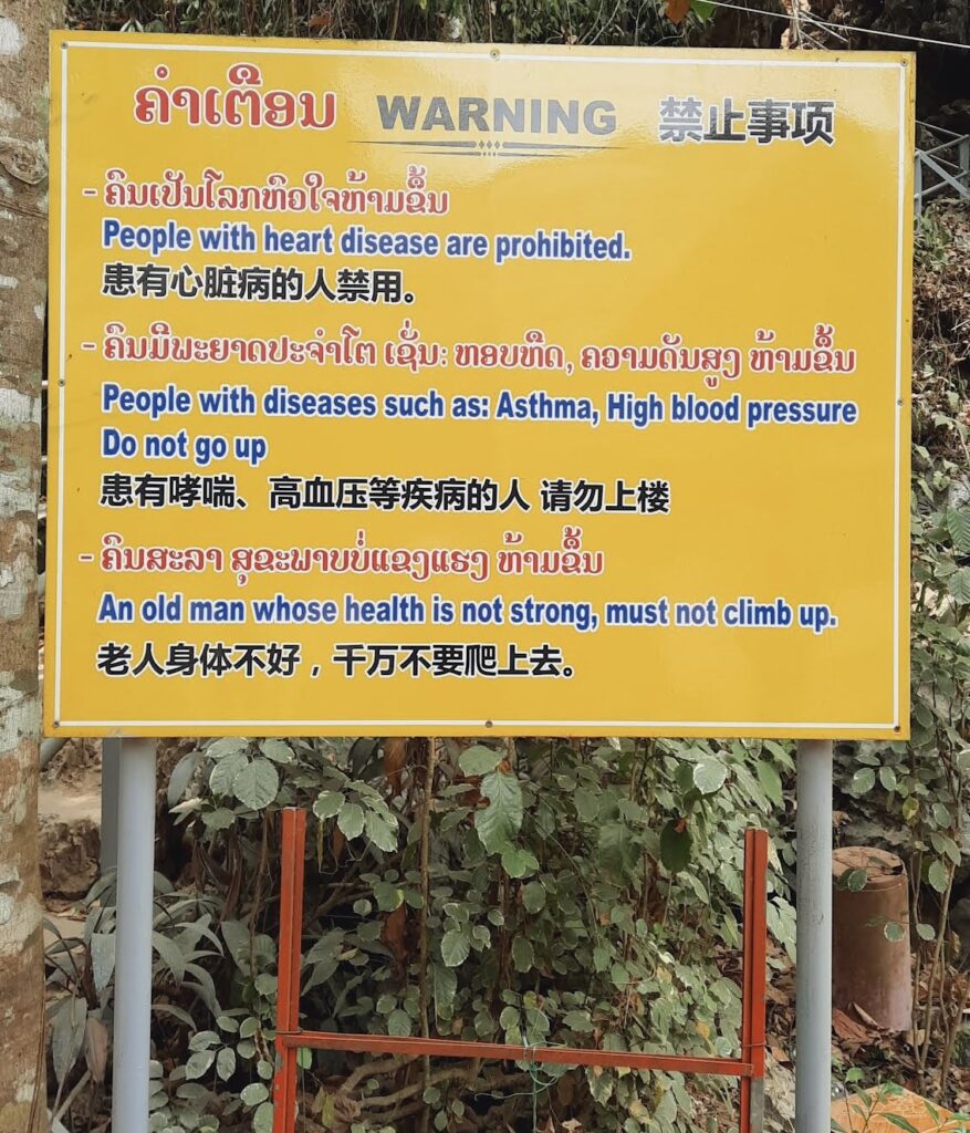 We hadn’t left the cave a minute too soon. A Chinese group were heading up the path in boisterous mood, intrigued by the old Europeans coming down. Telling us how old they were with figure gestures and looking for a response. Maybe the sign at the start of the climb had them questioning our sanity? One chap pointing to his chest “China”, my response “New Zealand”, a blank look..:)